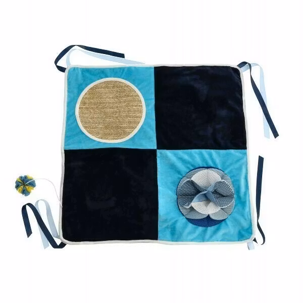 Ge din katt en lekmiljö full av stimulans och nöje med Aktiveringsleksak Nettan. Denna prasslande lekmatta är designad för att tillfredsställa din katts naturliga instinkter och ge oändliga lekstunder. Mattan är tillverkad av prasselmaterial som fångar kattens uppmärksamhet, och sidenbanden i hörnen uppmuntrar till lek och bus.