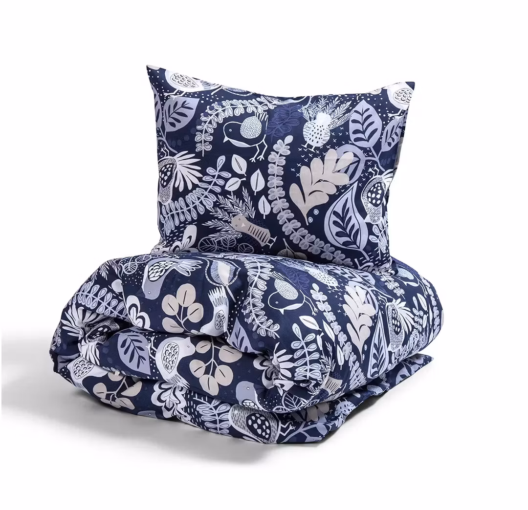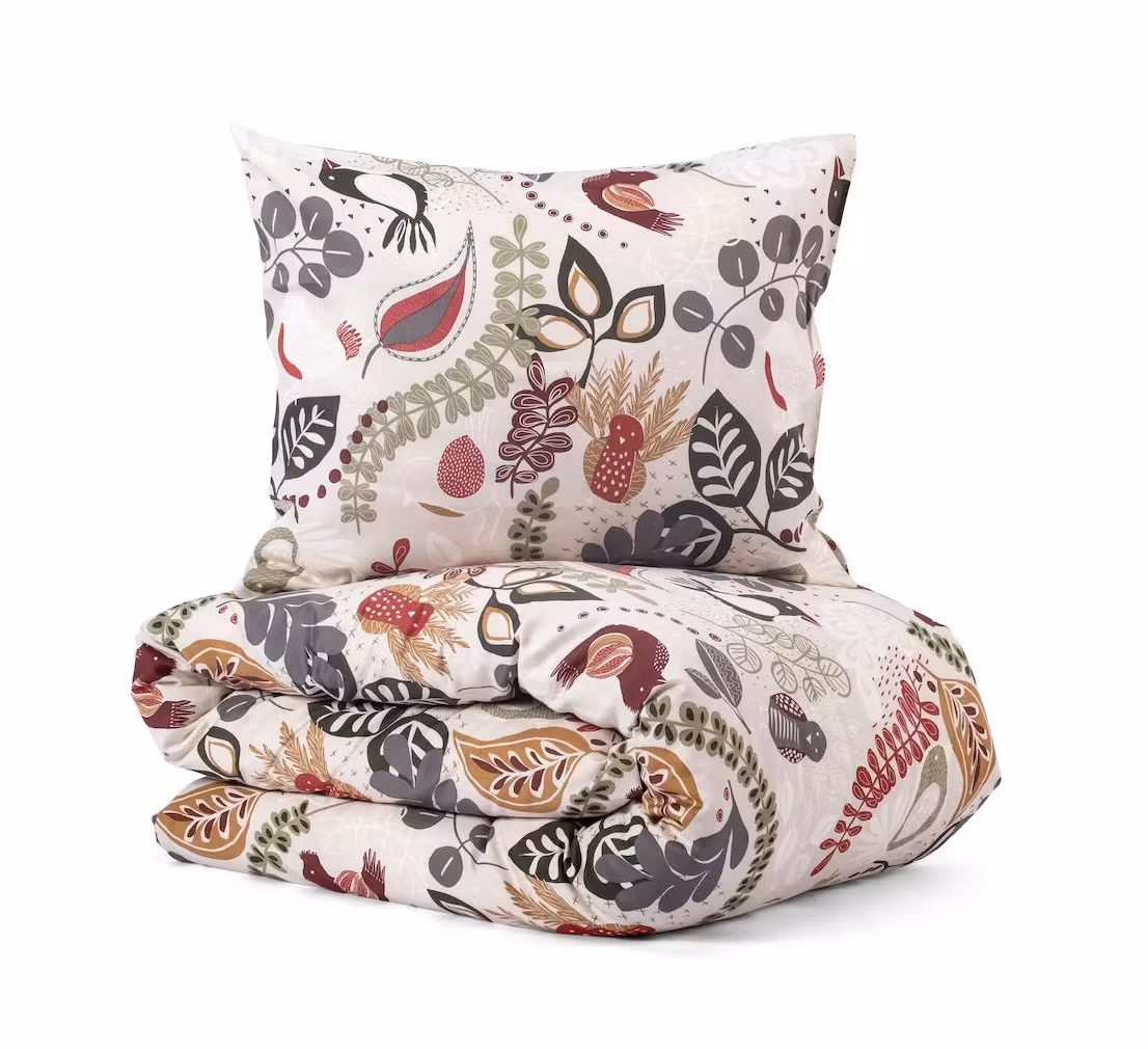 Bäddset Stormhagen Satin 150x210 från Kosta Linnewäfveri är ett elegant och färgstarkt bäddset som kombinerar vacker design med lyxig komfort. Det naturinspirerade mönstret med fåglar och blad skapar liv i sovrummet, medan den mjuka bomullssatinen ger en sval och behaglig sovupplevelse. Ett perfekt val för dig som vill ge sängen både stil och komfort.