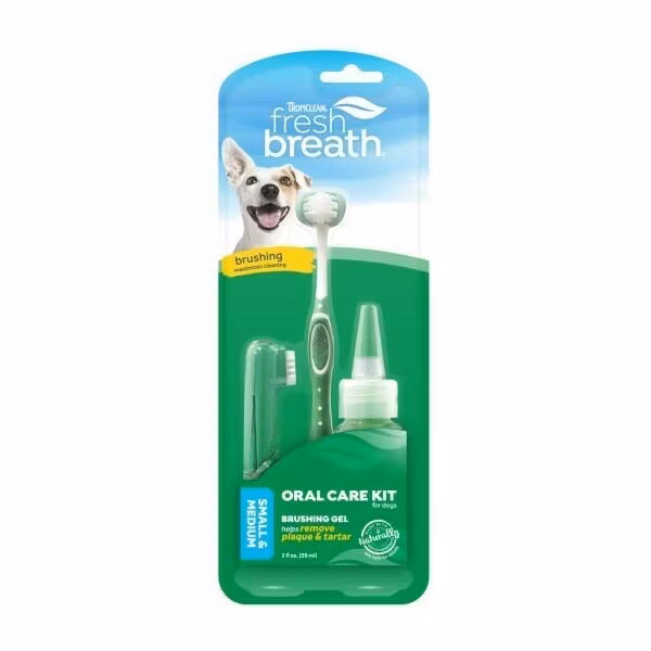 Håll ditt husdjurs andedräkt fräsch och tänderna rena med TropiClean Oral Care Kit. Detta kompletta tandvårdspaket är speciellt utformat för mindre hundar och katter och innehåller allt du behöver för att ge ditt husdjur en hälsosam tandvårdsrutin. Setet inkluderar en Fresh Breath gel, en fingertandborste och en dubbel tandborste för att rengöra även de svåråtkomliga områdena. Regelbunden användning hjälper till att förebygga tandsten, plack och dålig andedräkt.