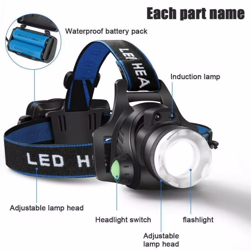 ? 4-läges LED-lampor: Välj mellan superljus, ljusstark, blinkande SOS ljus och induktionsfunktion ljus. Röd varningslampa på baksidan av strålkastaren spelar en bra varningsroll. Huvudet på denna lampa är 90° justerbart för nedåt, Välj annan vinkel, nedåt eller däremellan. Zoomfokus för nära arbete eller zooma ut för avstånd.