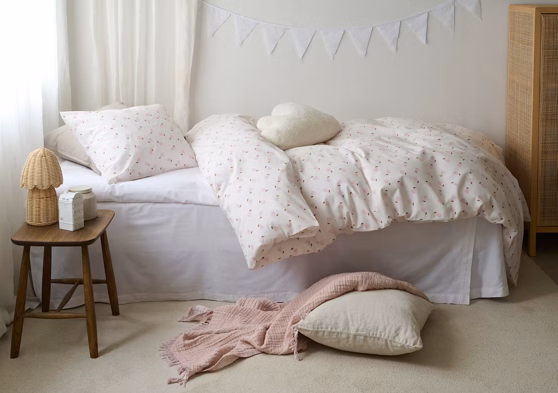 Bäddsetets bomullskvalitet gör att det känns mjukt, följsamt och behagligt mot huden – perfekt för en god natts sömn året runt.