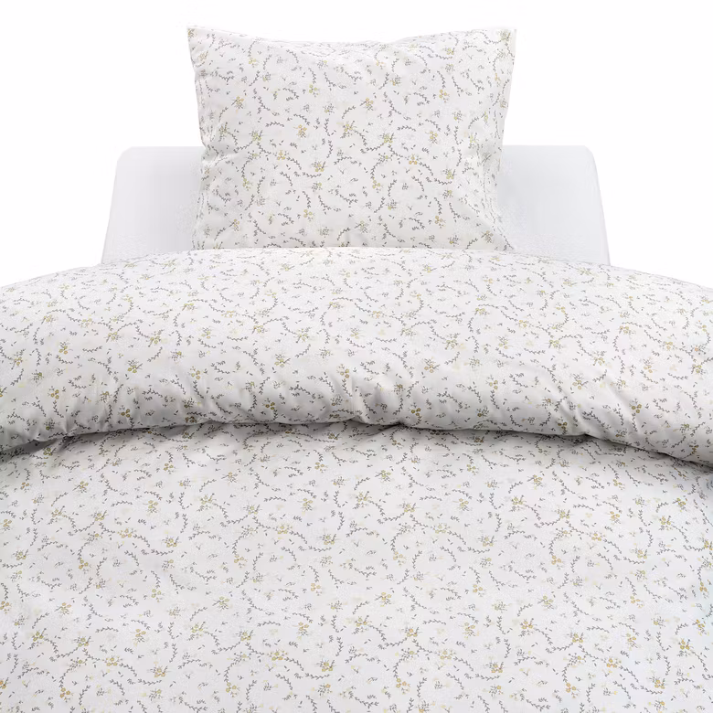Bäddsetet är tillverkat i 100 % bomull, vilket ger en mjuk och behaglig känsla mot huden. Bomullens naturliga andningsförmåga bidrar till en skön sovkomfort året runt.