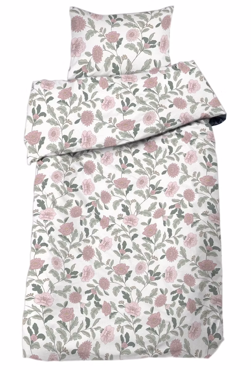 Det blommiga mönstret är elegant balanserat och skapar en rogivande helhet utan att kännas överväldigande. Kombinationen av offwhite och rosa gör bäddsetet lätt att matcha med både ljusa och mörkare inredningsdetaljer. Resultatet är ett sovrum som känns harmoniskt, ombonat och inbjudande – perfekt året runt.